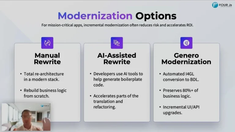 We’ll show what’s new in Genero v6, Informix 15 and how it helps teams: tighter UI, production-grade monitoring, modern encryption, and a clean path toward Informix 15.